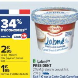 Fromage Labné PRESIDENT chez Carrefour (28/01 - 10/02)