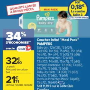 Couches Baby-Dry Pampers chez Carrefour (28/01 - 10/02)
