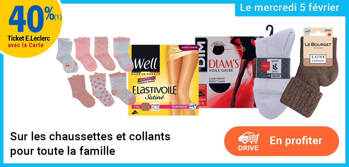 Auteur Sujet: Leclerc : 40% en tickets leclerc sur les chaussettes et collants (Le 05/02)  (Lu 288 fois)