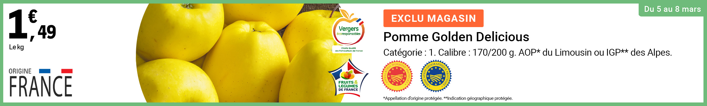 Sujet: Leclerc : pomme golden origine France 1.49€ le kg (05/03 - 08/03) (Lu 412 fois)
