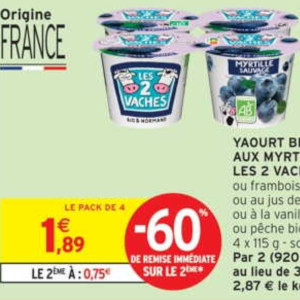 Yaourt LES 2 VACHES chez Intermarché (19/03 - 30/03)