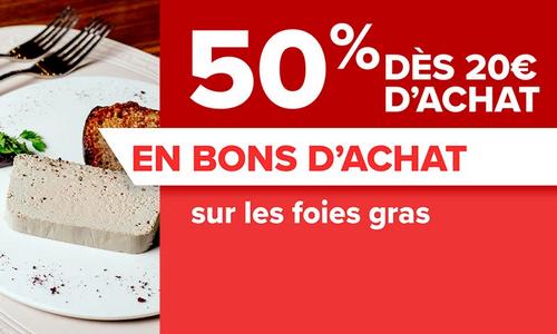 Carrefour : 50% en BA dès 20€ d'Achats sur les Foies gras (18/04 - 21/04)