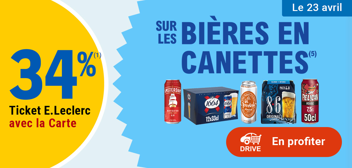 Auteur Sujet: Leclerc : 34% en tickets leclerc sur les bières en canettes (Le 23/04)  (Lu 318 fois)