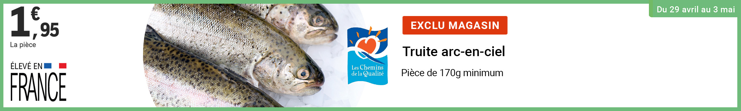 Leclerc : truite arc-en-ciel élevée en France 1.95€ la pièce (29/04 - 03/05)
