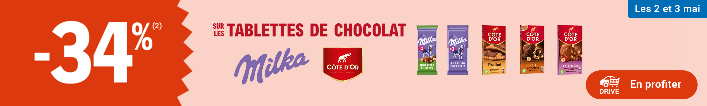 Auteur Sujet: Leclerc : 34% de RI sur tablettes de chocolat Milka et Côte d'Or (02/05 - 03/05)  (Lu 811 fois)