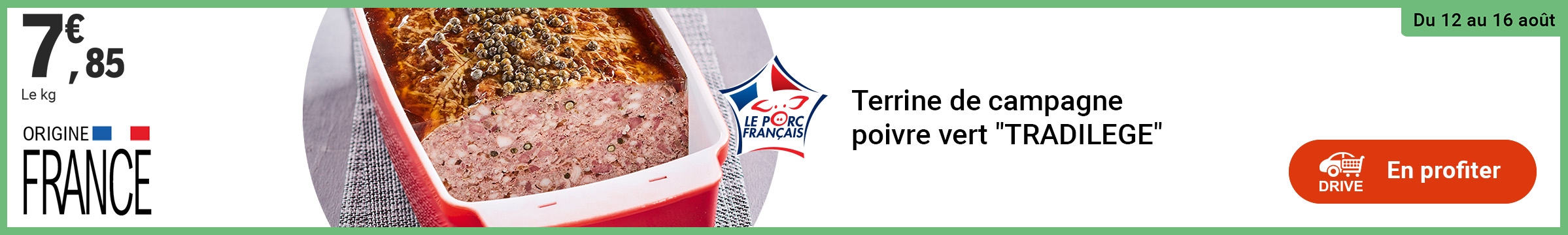 Re: Leclerc : terrine campage Tradilège origine France 7.85€ le kg (12/8 - 16/8)