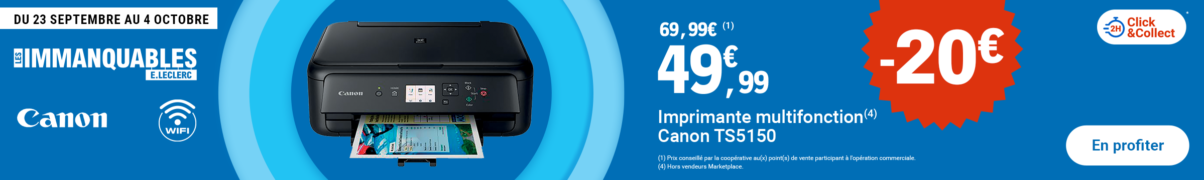 Leclerc : imprimante multifonction Canon TS5150 49.99€ (23/09 - 04/10)
