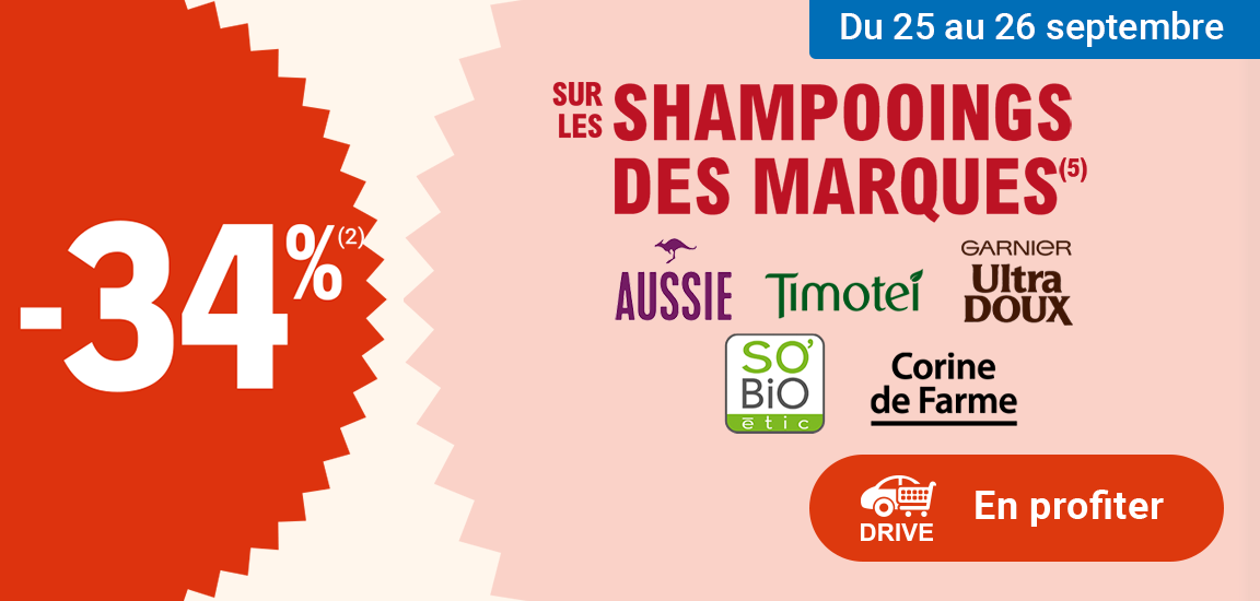 Auteur Sujet: Leclerc : 34% de RI sur sélection de marques de shampooings (25/09 - 26/09)  (Lu 361 fois)