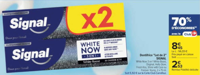 Sujet: Dentifrice WHITE NOW Signal chez Carrefour (07/10 - 20/10) (Lu 28 fois)