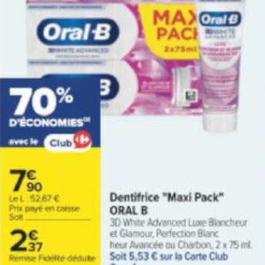 Dentifrice 3D WHITE Oral-B chez Carrefour (07/10 - 20/10)