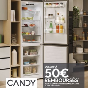 CANDY : Jusqu'à 50€ Remboursés sur Réfrigérateur (30538)