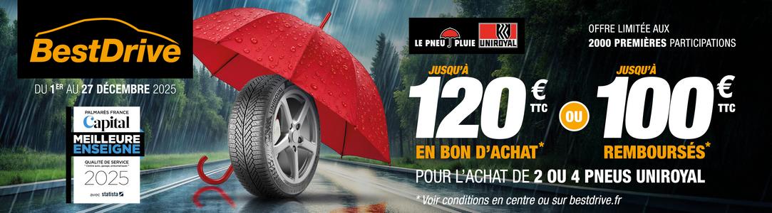 Sujet: UNIROYAL : Jusqu'à 100€ Remboursés sur les Pneus chez BestDrive (Lu 54 fois)