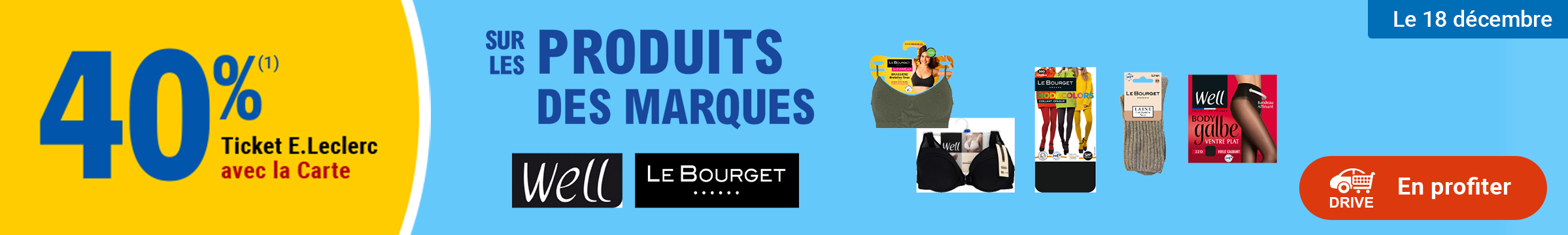 Auteur Sujet: Leclerc : 40% en ticket leclerc sur marques Well et Le Bourget (Le 18/12)  (Lu 86 fois)