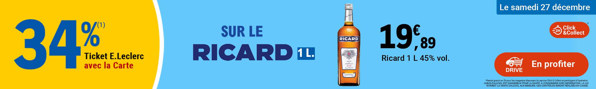 Re: Leclerc : 34% en ticket leclerc sur le Ricard 1L 19.89€ (Le 27/12)