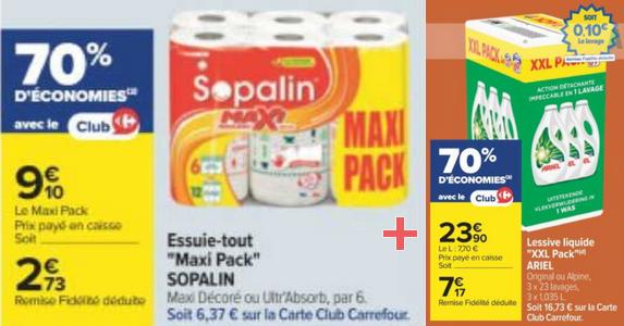 Lessive Liquide ARIEL + Essuie-tout Sopalin chez Carrefour (23/01 - 25/01)