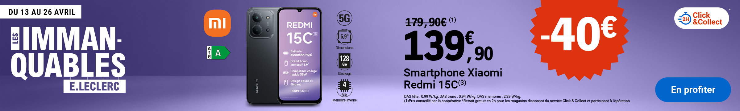 Leclerc : smartphone Xiaomi Redmi 15C 139.90€ (13/04 - 26/04)