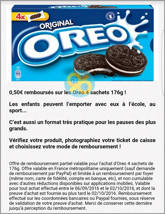 Re : Fidall : Oreo 4 sachets 176g 0,50€ remboursé (02/10)