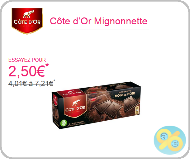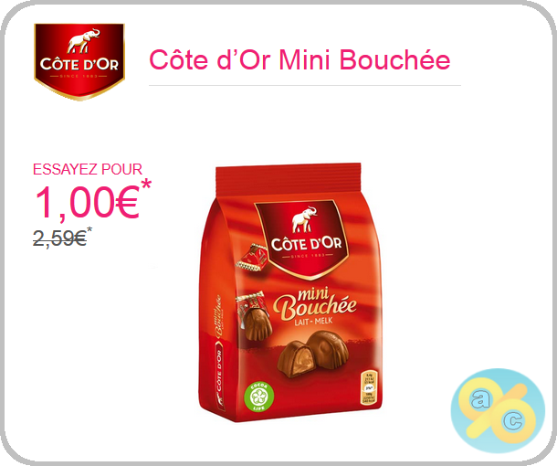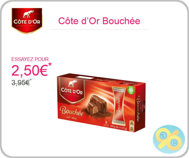 0,90€ à valoir sur l’achat d’un produit de la gamme Côte d’Or Bouchée