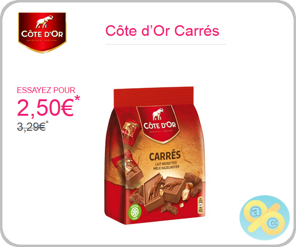 bon de reduction de 0.90€ à valoir sur l'achat d'un produit de la gamme Côte d'Or Carrés sur ma vie en couleur