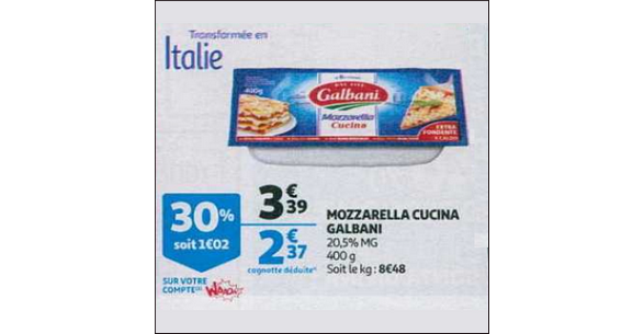 Mozzarella Cucina Galbani chez Auchan (05/12 - 11/12)