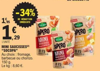 Auteur Sujet: Mini saucisses Apéro Socopa chez Leclerc Pointe Sud-Ouest (04/08 - 08/08)  (Lu 396 fois)