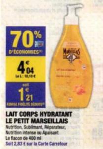 Sujet: Lait Hydratant Le Petit Marseillais chez Carrefour Market (29/09 - 11/10) (Lu 249 fois)