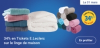Leclerc : 34% en tickets leclerc sur le linge de maison (Le 31/03)