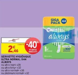 Serviettes Platinum Always chez Intermarché (04/05 - 16/05)