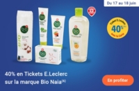 Auteur Sujet: Leclerc : 40% en tickets leclerc sur la marque Bio Naia (17/06 - 18/06)  (Lu 1108 fois)