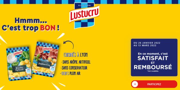 Trouvé ce jour à Cora: Lustucru Satisfait et remboursé du 26/01/2022 au 13/03/2022.