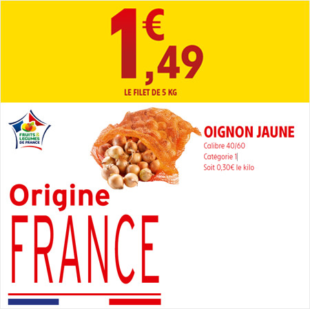 Sujet: Intermarché : oignon jaune origine France 1.49€ le filet de 5 kg (22/02 - 24/02) (Lu 756 fois)
