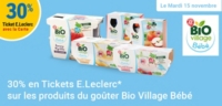 Leclerc : 30% en tickets leclerc sur produits goûter Bio Village Bébé (15/11)