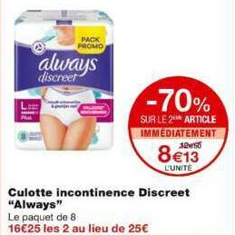 Culottes Discreet Always chez Monoprix (04/01- 15/01)