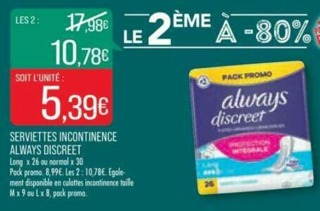 Serviettes Discreet always chez Match (06/06 - 11/06)