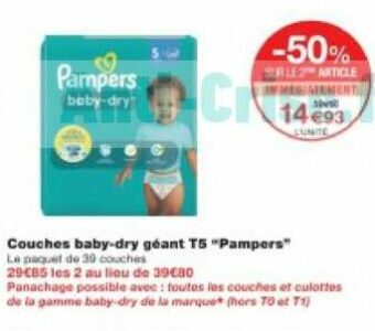Couches ou Culottes Baby-Dry Pampers chez Monoprix (21/06 - 30/06)