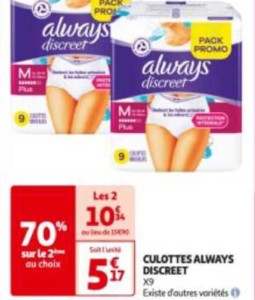 Culottes Discreet Always chez Auchan (04/07 - 10/07)