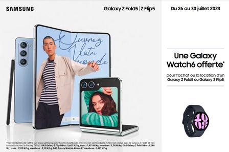 SAMSUNG : 1 Galaxy Z Fold5 ou Z Flip5 Acheté = 1 Galaxy Watch6 offerte