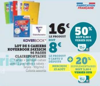 Cahier Koverbook Clairefontaine chez Magasins U (Le 23/08)