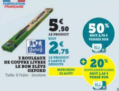Rouleaux de couvre-livres Oxford chez Magasins U (Le 23/08)