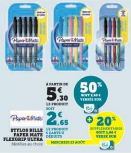 Stylos bille Paper Mate Flexgrip Ultra chez Magasins U (Le 23/08)
