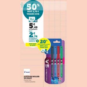 Stylos PILOT Roller V5 chez Hyper U (Le 23/08)
