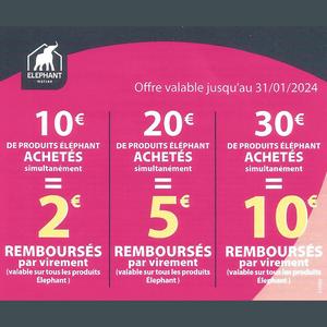 ÉLÉPHANT : Jusqu'à 10€ Remboursés