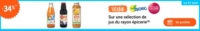(8) Sur une sélection de jus du rayon épicerie identifiés par les magasins participants. Offre non valable sur les gaspachos des rayons frais et ambiants, sur les produits de la marque « C’est qui le patron », les jus présents dans les rayons alimentaires infantiles et assaisonnement (jus de citron, lait de coco) et sur les produits ECO+.