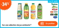 (6) Valable uniquement sur les jus ambiants des marques CARAÏBOS, CIDOU, JOKER, MINUTE MAID, OCEAN SPRAY, PAGO, PRESSADE et TROPICANA.
