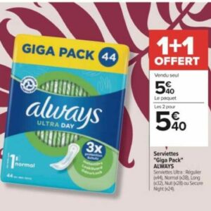 Serviettes always Ultra chez Carrefour (10/10 - 16/10)