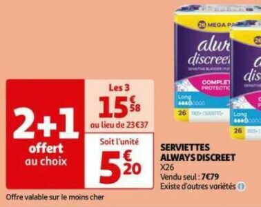 Sujet: Serviettes always Discreet chez Auchan (31/10 - 06/11) (Lu 240 fois)