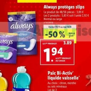Protège-slips always Dailies chez Lidl (08/11 - 14/11)
