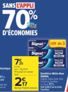 Dentifrice WHITE NOW Signal chez Carrefour (30/01 - 12/02)
