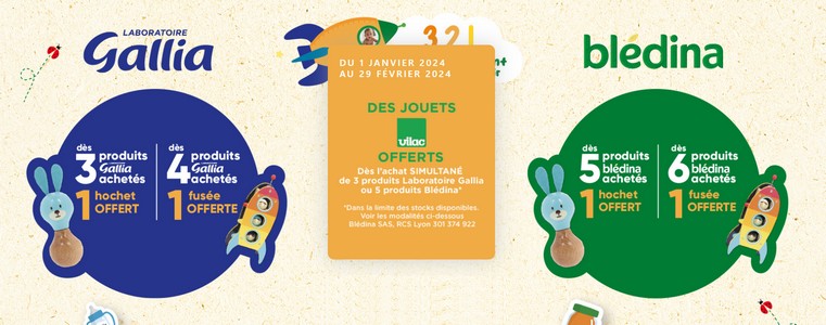 blédina / Gallia : 3 à 6 Produits Achetés = 1 Jouet vilac Offert