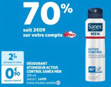 Déodorant Men Sanex chez Auchan (13/02 - 19/02)